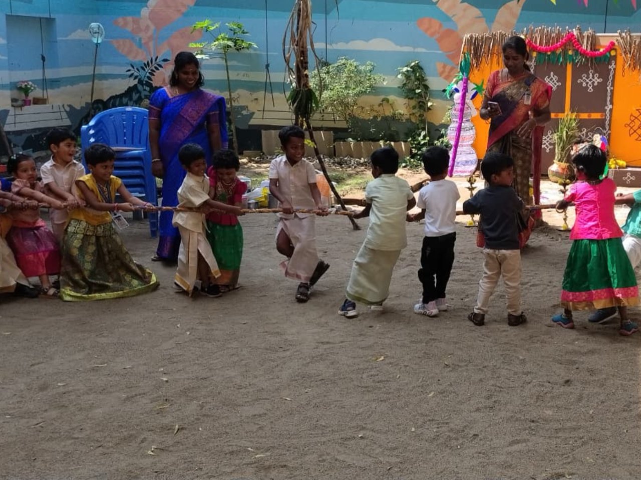 Pongal is a vibrant and joyful festival celebrated in Tamil Nadu and among Tamilians worldwide. Marking the end of the harvest season, this festival is a time of gratitude for nature’s bounty and the Sun God. We embrace this cultural heritage and celebrate Pongal with enthusiasm and educational activities.